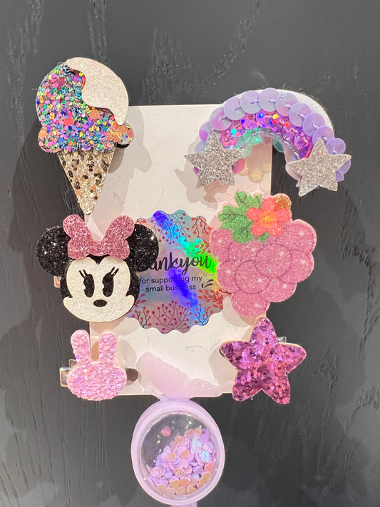 Glitter Hair clips! 6pk Minnie lilac variety pack
