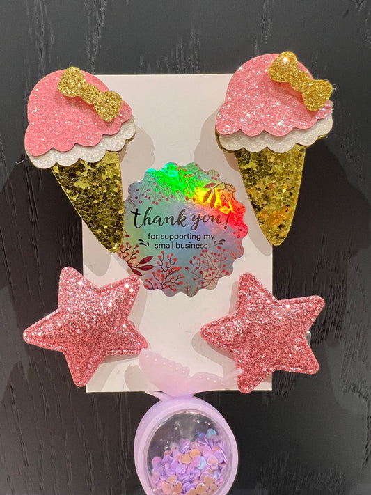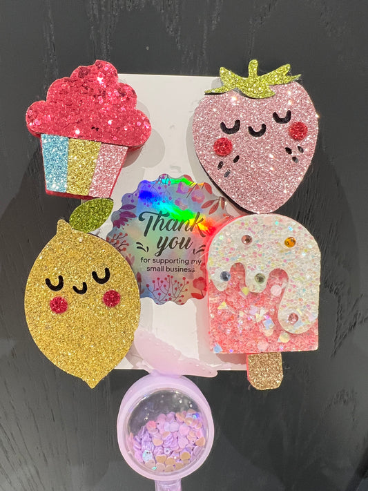 Glitter Hair clips! 4pk Sweet Treats variety pack