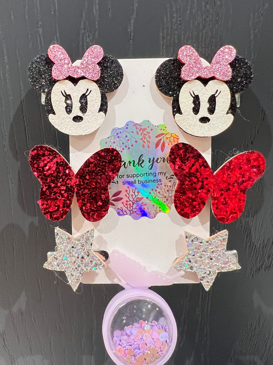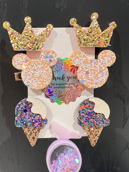 Glitter Hair clips! 4pk baby pink Mickey variety pack