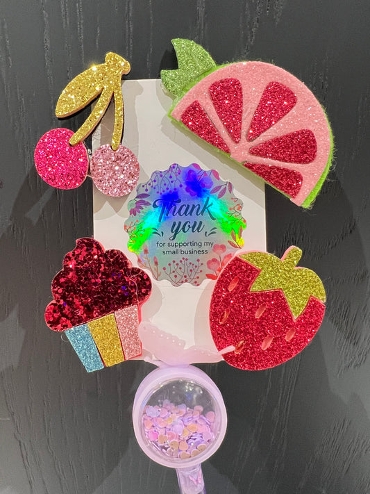 Glitter Hair clips! 4pk Fruity Fresh variety pack