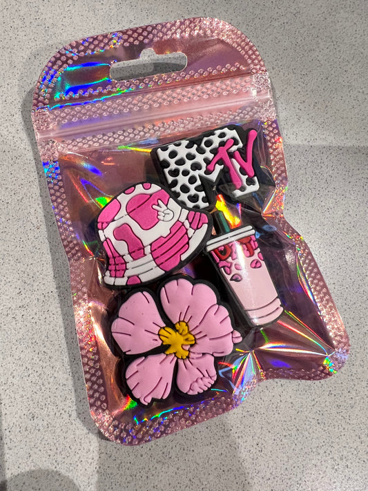 Croc charm set 4pk - 90s vibe - Mtv, bucket hat, flower, frapp!