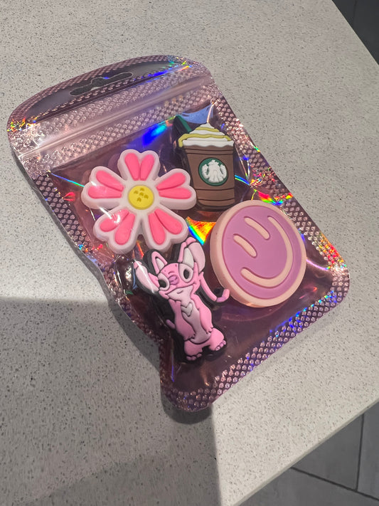 Croc charm set 4pk - fan girl! - Harry, butterfly, smilie, pink wed!